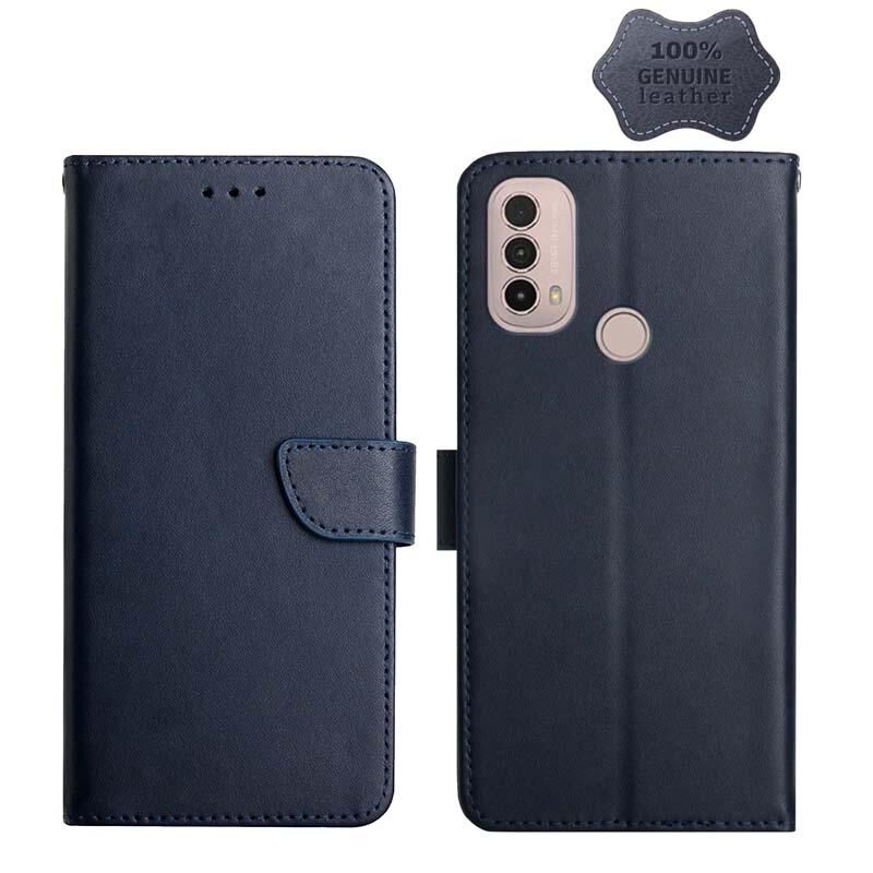 Θήκη τηλεφώνου οριζόντια, ανακλινόμενη, από γνήσιο δέρμα για Motorola Moto E40, ανθεκτική στα δακτυλικά αποτυπώματα (Μαύρο)