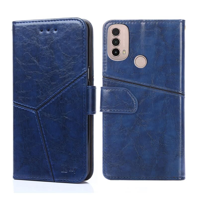 Για Motorola Moto E40 Γεωμετρική ραφή οριζόντια Flip δερμάτινη θήκη τηλεφώνου (Μπλε)