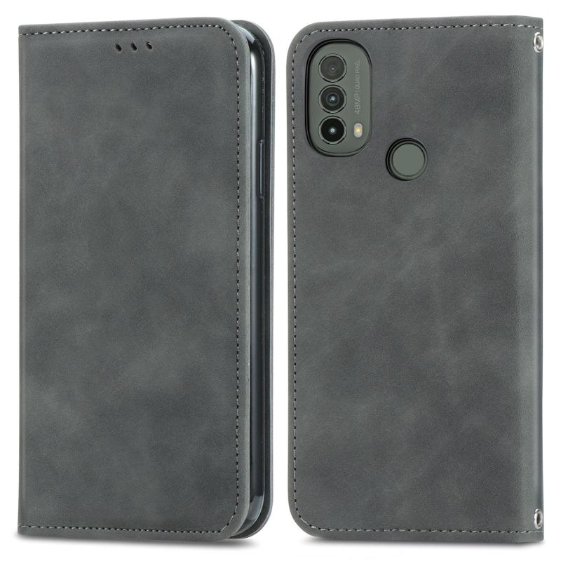 For Motorola Moto E40 Retro Skin Feel Magnetic Horizontal Flip Leather Case(Grey)