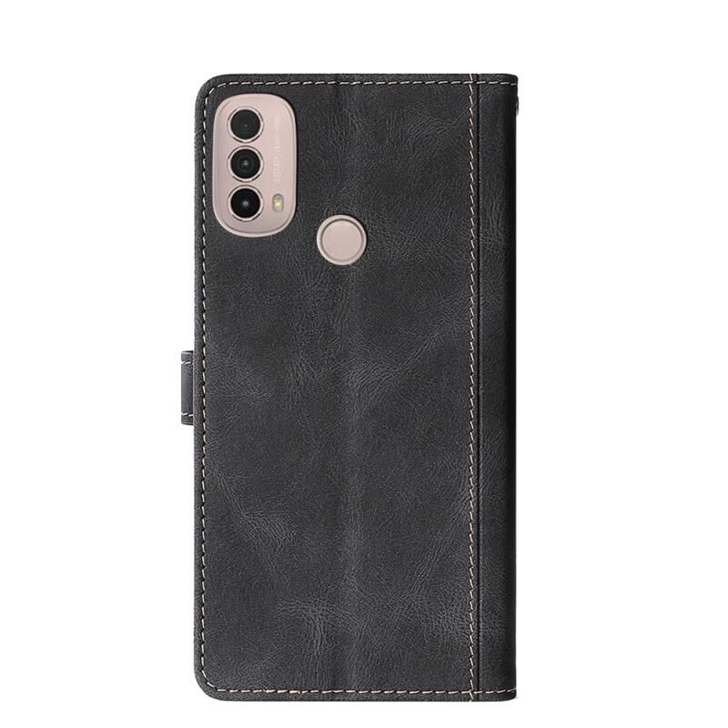 Για Motorola Moto E40 ραφή δέρμα αίσθηση μαγνητική πόρπη PU δέρμα τηλέφωνο υπόθεση (Μαύρο)