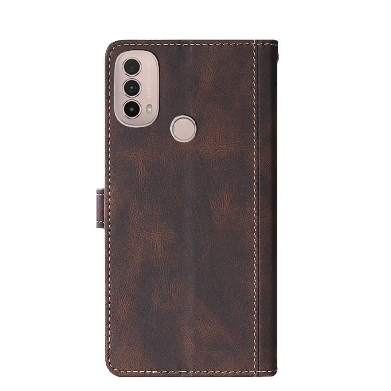 Για Motorola Moto E40 ραφή δέρμα αίσθηση μαγνητική πόρπη PU δέρμα τηλέφωνο υπόθεση (Καφέ)