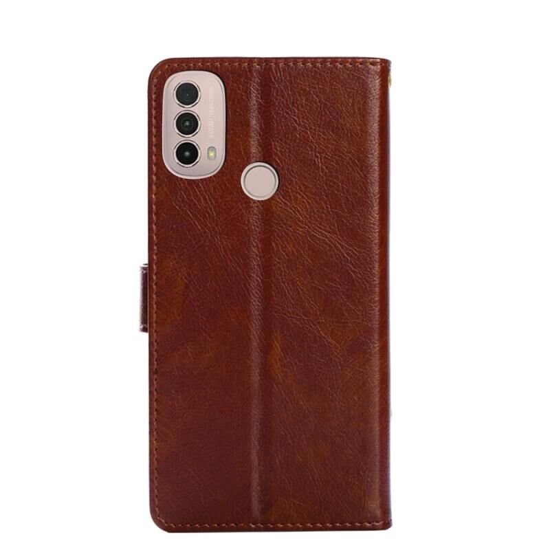 Για Motorola Moto E40 φερμουάρ τσάντα PU + TPU οριζόντια Flip δερμάτινη θήκη (καφέ)