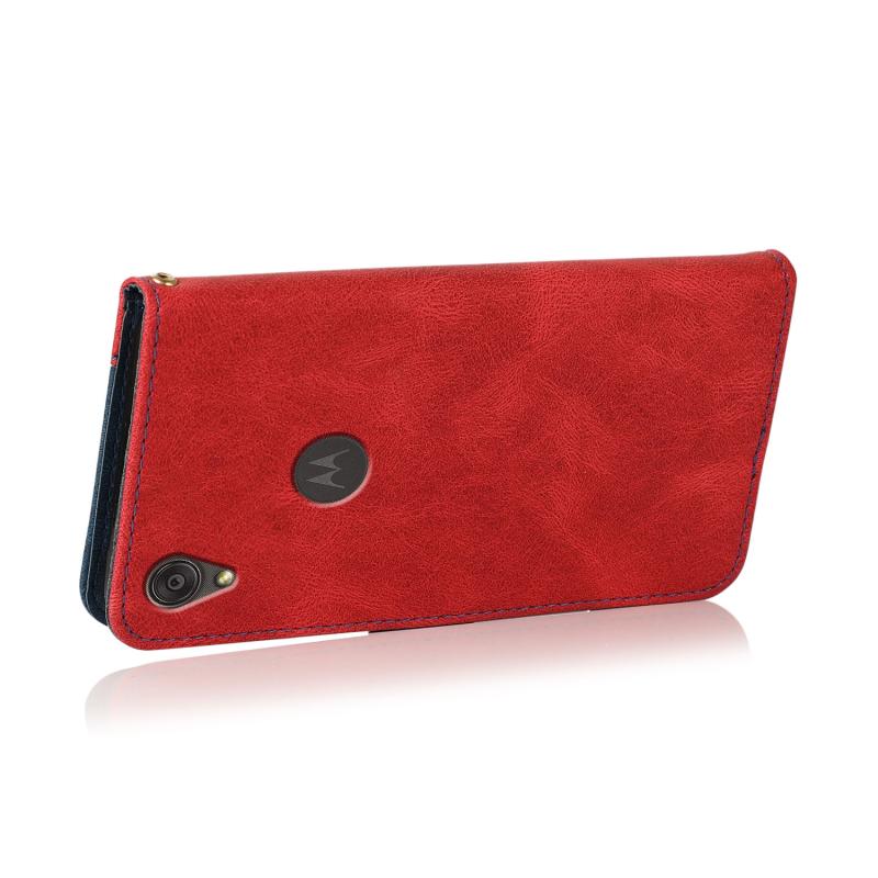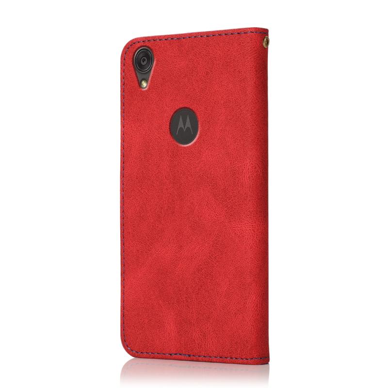 Θήκη τηλεφώνου δερμάτινη με διχρωμία ραφής για Motorola Moto E6 (Κόκκινο Μπλε)