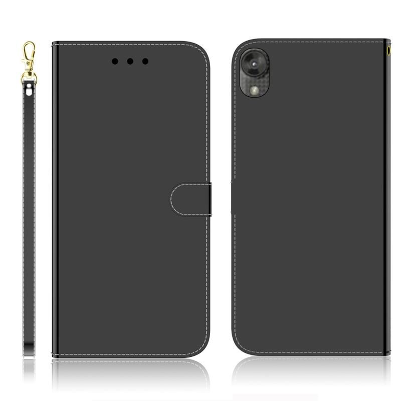 Για το Motorola Moto E6 Imitated Mirror Surface Horizontal Flip Leather Case με θήκη για κάρτες & υποδοχές & πορτοφόλι & κορδόνι (Μαύρο)