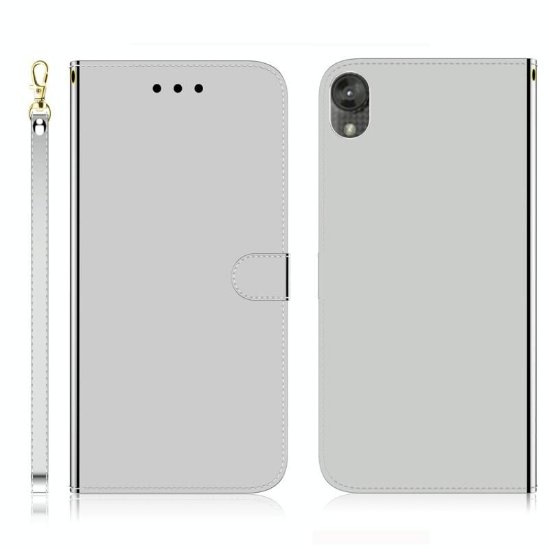 Για το Motorola Moto E6 Imitated Mirror Surface Horizontal Flip Leather Case with Holder & Card Slots & Wallet & Lanyard (Silver)