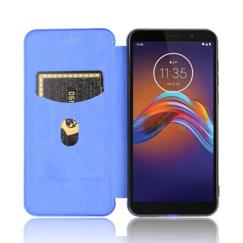 Για Motorola Moto E6 Play Carbon Fiber Texture Horizontal Flip TPU + PC + PU Leather Case με σχοινί & υποδοχή κάρτας (μπλε)