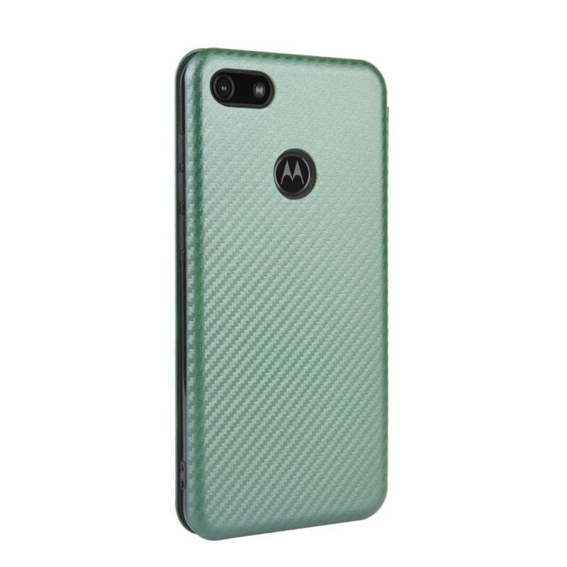 Για Motorola Moto E6 Play Carbon Fiber Texture Horizontal Flip TPU + PC + PU Leather Case με σχοινί & υποδοχή κάρτας (πράσινο)