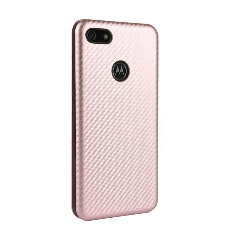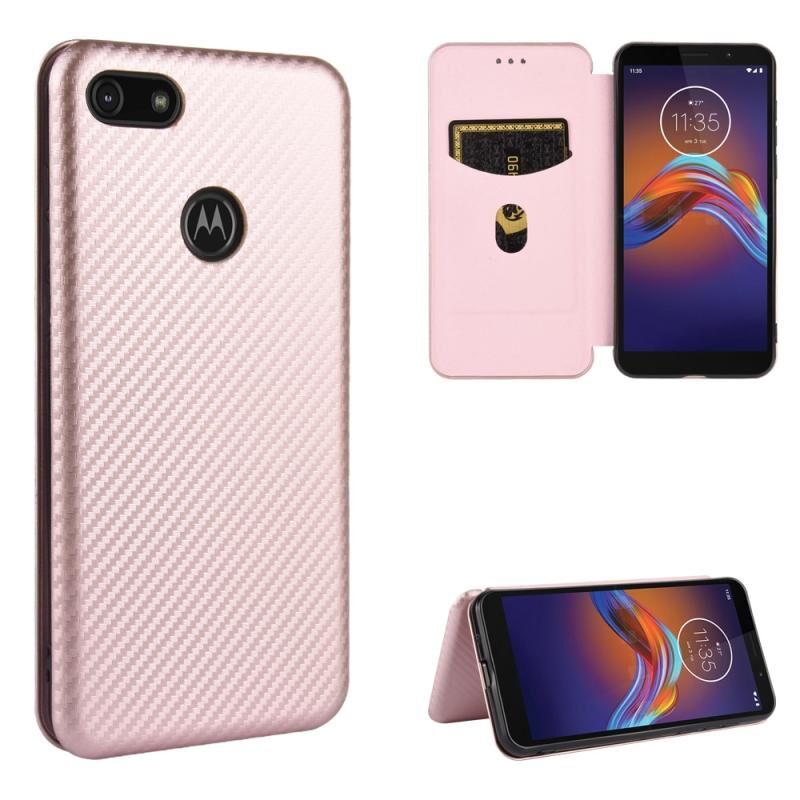 Για Motorola Moto E6 Play Carbon Fiber Texture Horizontal Flip TPU + PC + PU Leather Case με σχοινί & υποδοχή κάρτας (ροζ)