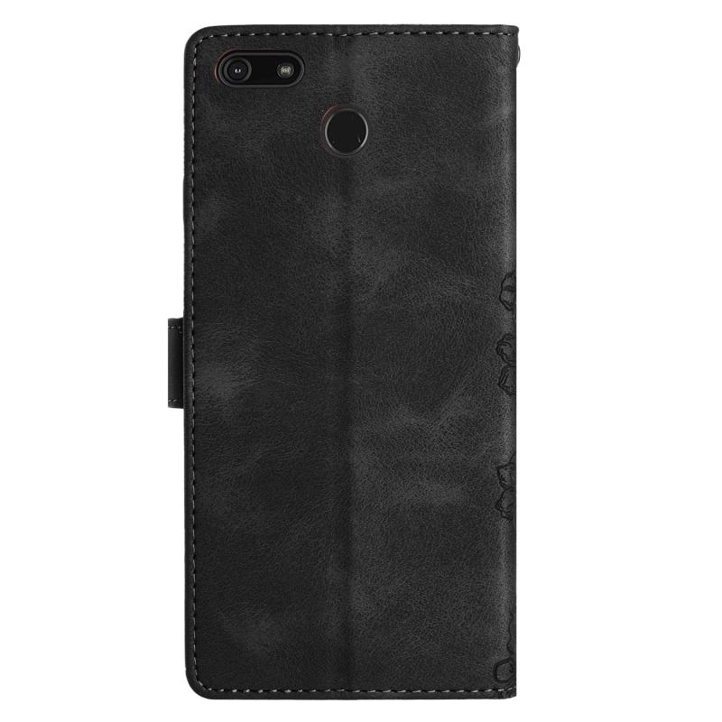 For Motorola Moto E6 Play Cherry Blossom Butterfly Skin Feel Embossed PU Phone Case(Black)