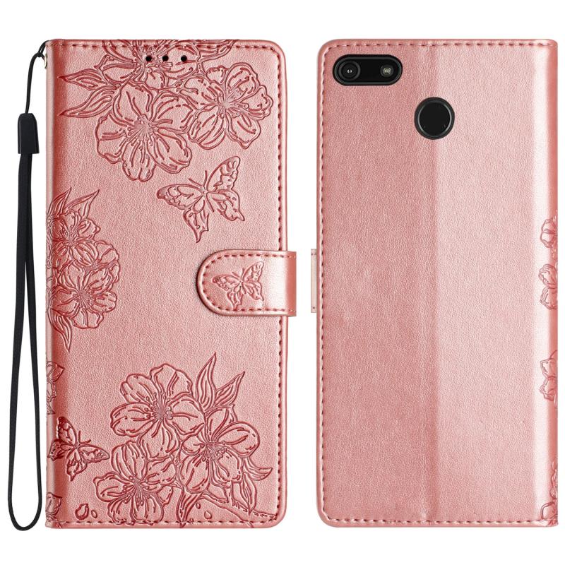 For Motorola Moto E6 Play Cherry Blossom Butterfly Skin Feel Embossed PU Phone Case(Rose Gold)