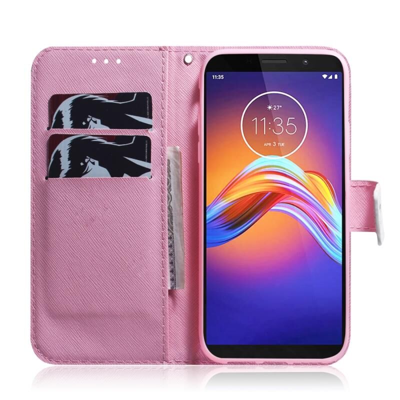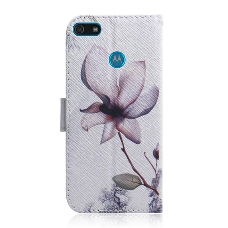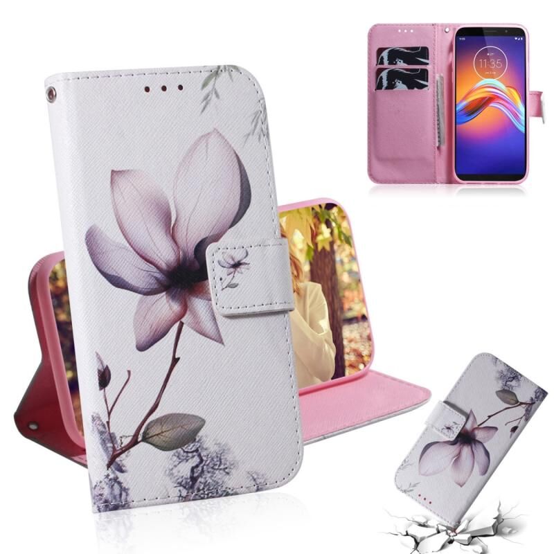 Θήκη δέρματος οριζόντιας αναδίπλωσης με μαγνητική έλξη και συνδυασμένο σχέδιο για Motorola Moto E6 Play, με βάση στήριξης, θήκη για κάρτες και πορτοφόλι (Λουλούδι Μαγνολίας)
