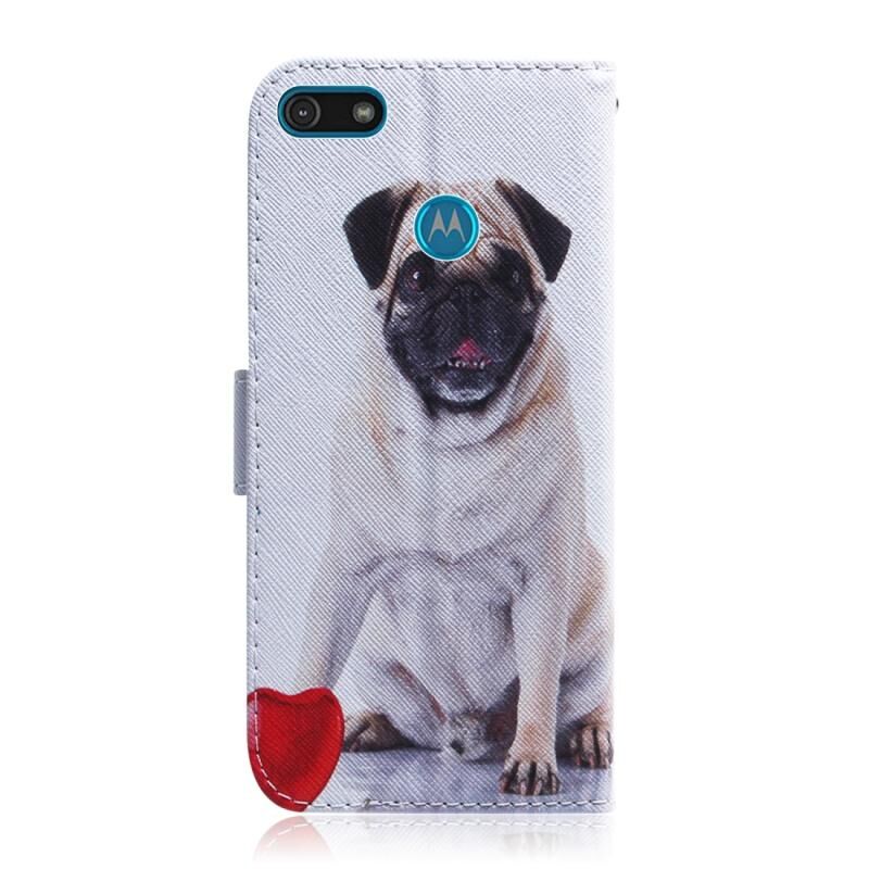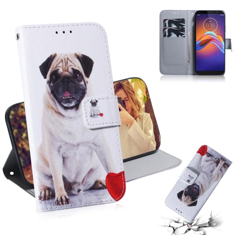 Θήκη δέρματος οριζόντιας αναδίπλωσης με μαγνητική έλξη και συνδυασμό σχεδίου για Motorola Moto E6 Play, με βάση στήριξης, θήκη για κάρτες και πορτοφόλι (Pugs)