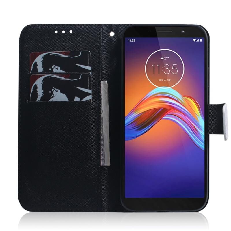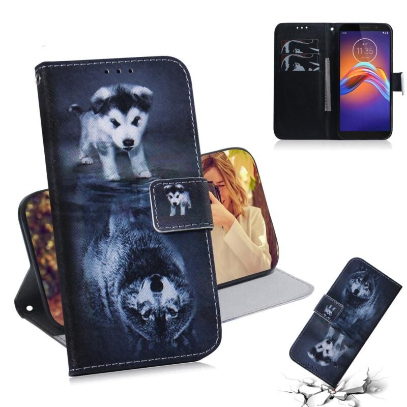 Θήκη δέρματος οριζόντιας αναδίπλωσης με μαγνητική έλξη και συνδυασμό σχεδίου για Motorola Moto E6 Play, με βάση στήριξης, θήκη για κάρτες και πορτοφόλι (Λύκος και Σκύλος)