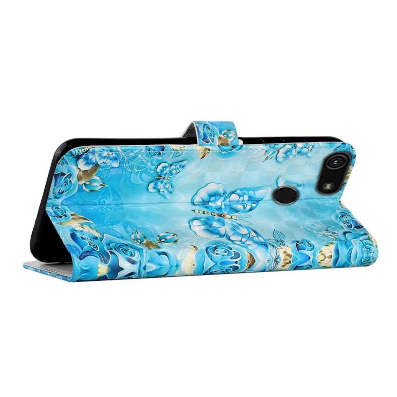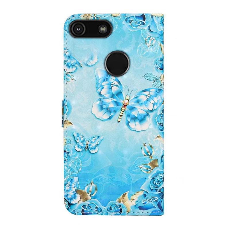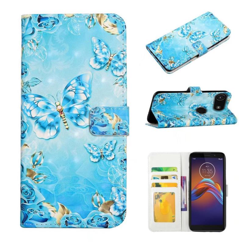 For Motorola Moto E6 Play Oil Embossed 3D Drawing Leather Phone Case(Blue Butterflies)