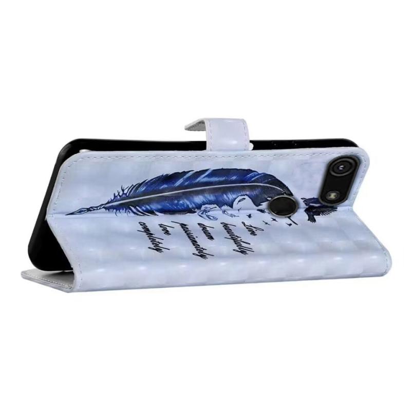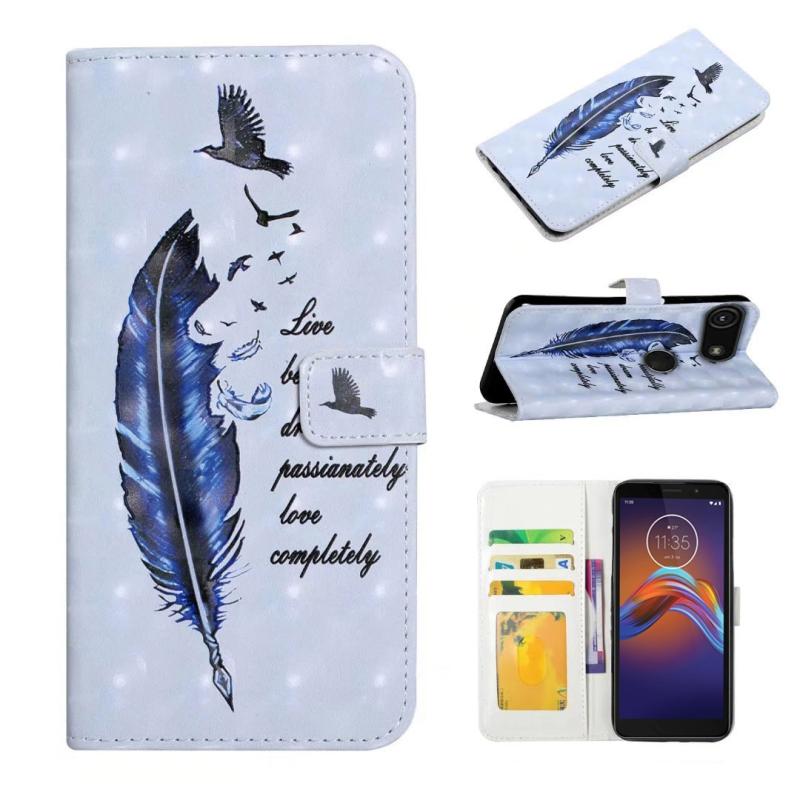 For Motorola Moto E6 Play Oil Embossed 3D Drawing Leather Phone Case(Blue Feather)