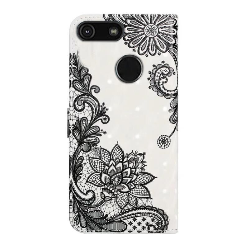 Θήκη τηλεφώνου δερμάτινη με ανάγλυφο σχέδιο λαδιού 3D για Motorola Moto E6 Play (Λουλούδι με δαντέλα)