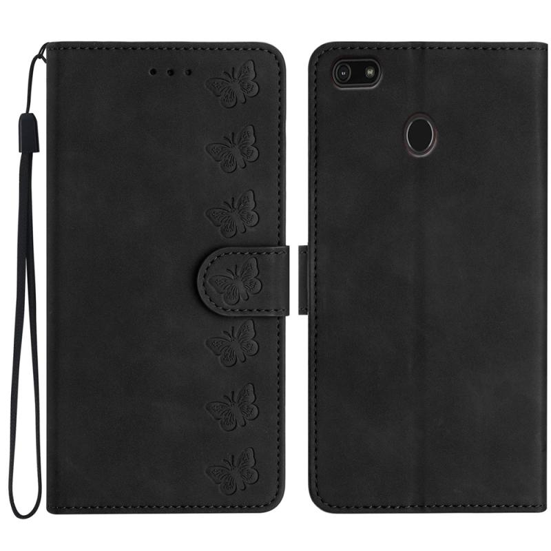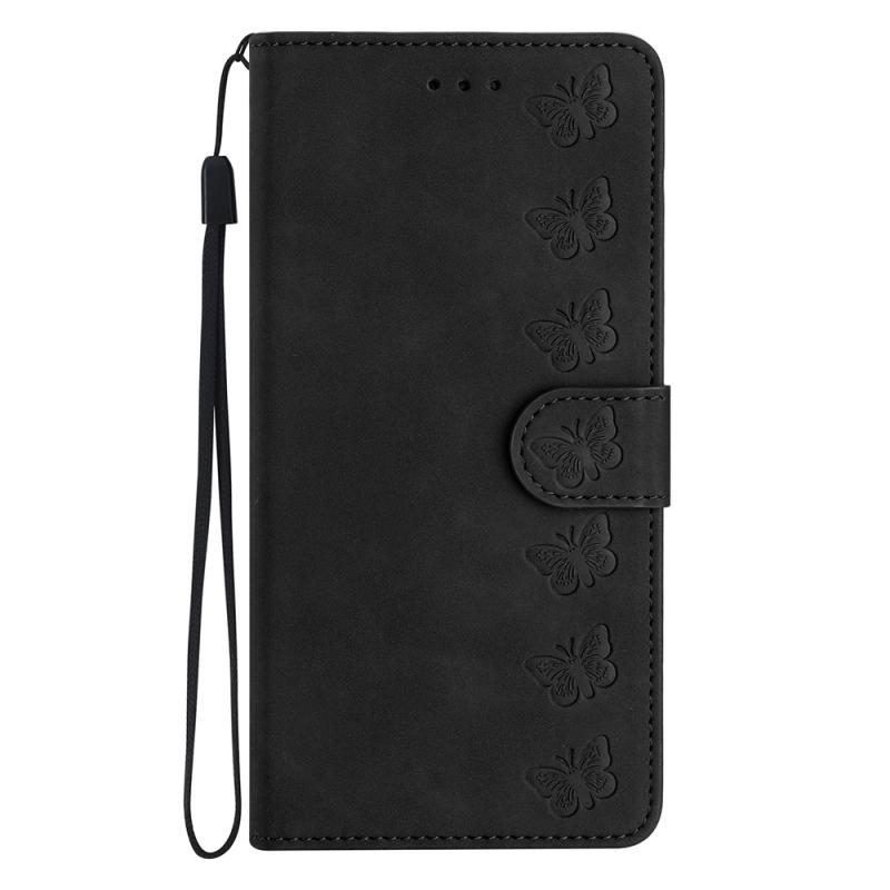For Motorola Moto E6 Play Seven Butterflies Embossed Leather Phone Case(Black)