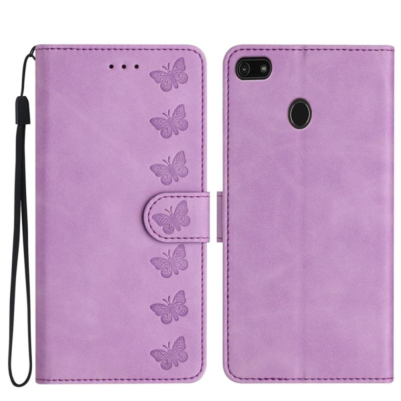 For Motorola Moto E6 Play Seven Butterflies Embossed Leather Phone Case(Purple)