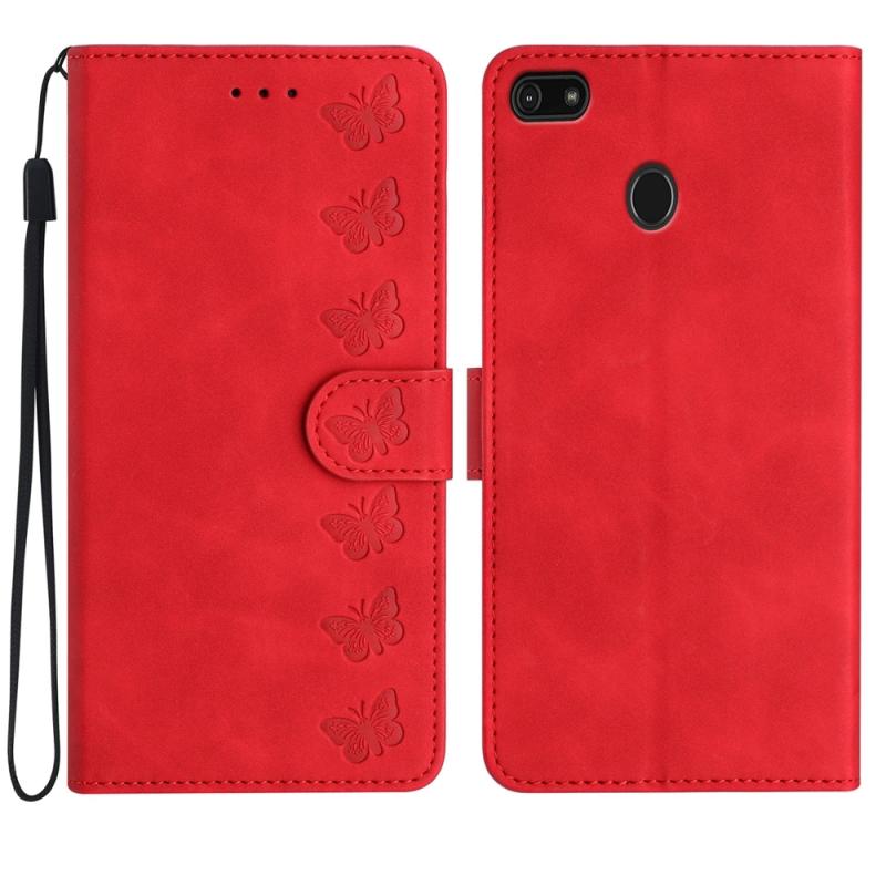 For Motorola Moto E6 Play Seven Butterflies Embossed Leather Phone Case(Red)