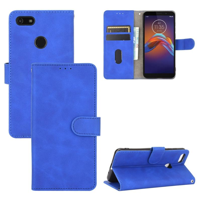 For Motorola Moto E6 Play Solid Color Skin Feel Magnetic Buckle Horizontal Flip Calf Texture PU Leather Case with Holder & Card Slots & Wallet(Blue)