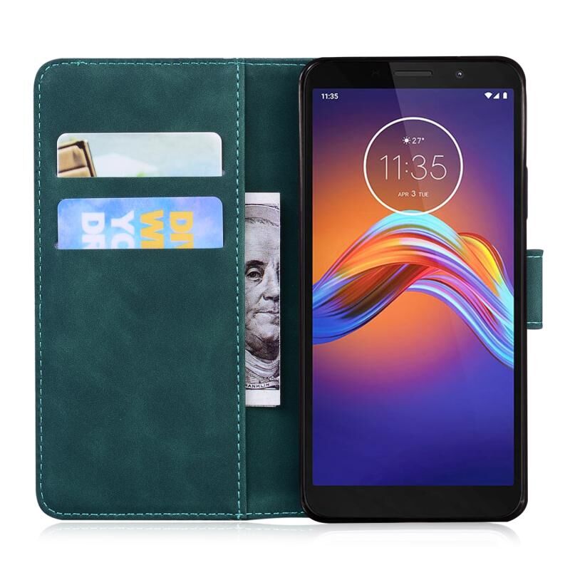 Θήκη δέρματος οριζόντιας αναδίπλωσης για Motorola Moto E6 Play με ανάγλυφο σχέδιο τίγρης, με βάση & υποδοχές καρτών & πορτοφόλι (Μαύρο)