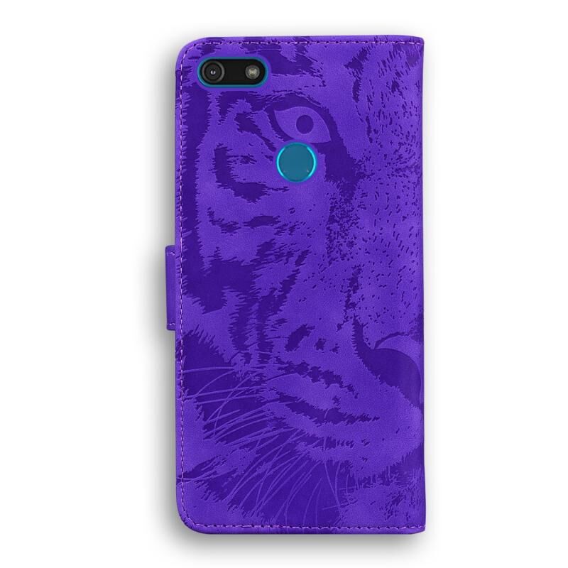 Θήκη δέρματος οριζόντιας αναδίπλωσης για Motorola Moto E6 Play με ανάγλυφο σχέδιο τίγρης, με βάση & υποδοχές καρτών & πορτοφόλι (Μωβ)