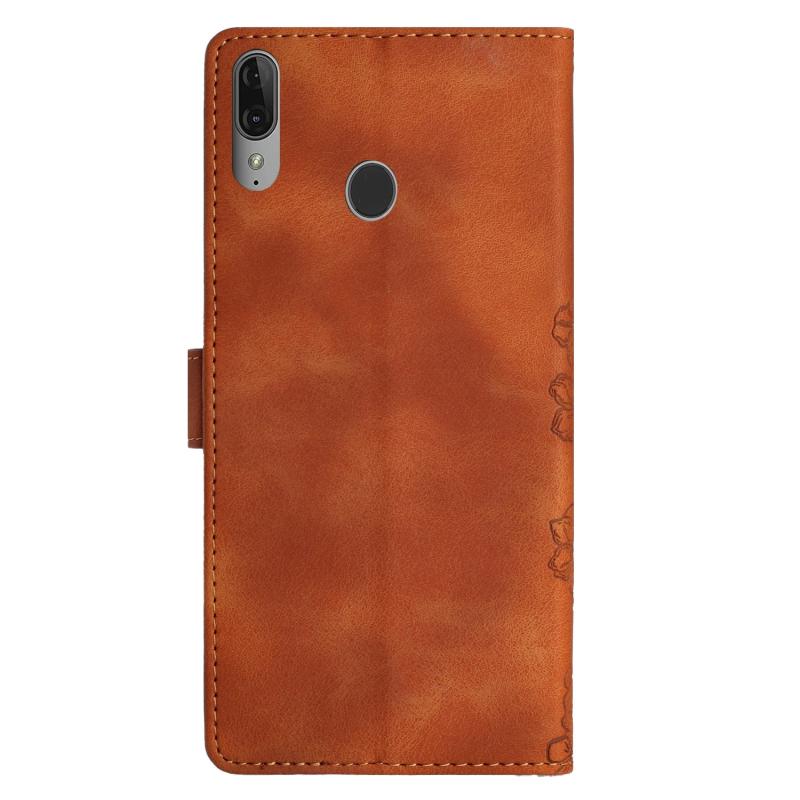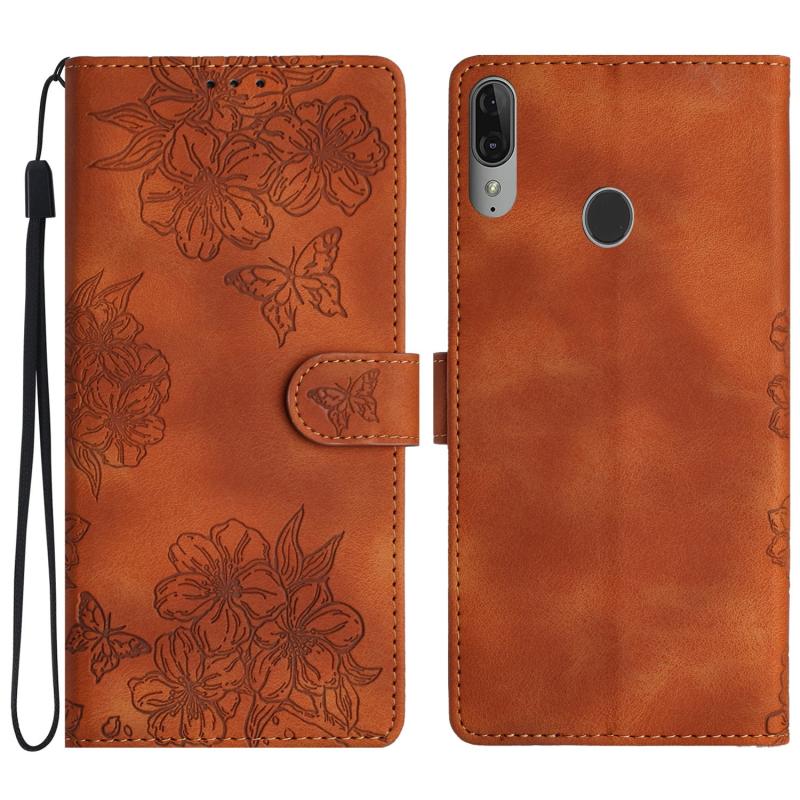 For Motorola Moto E6 Plus Cherry Blossom Butterfly Skin Feel Embossed PU Phone Case(Brown)