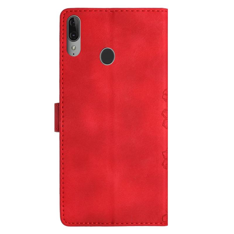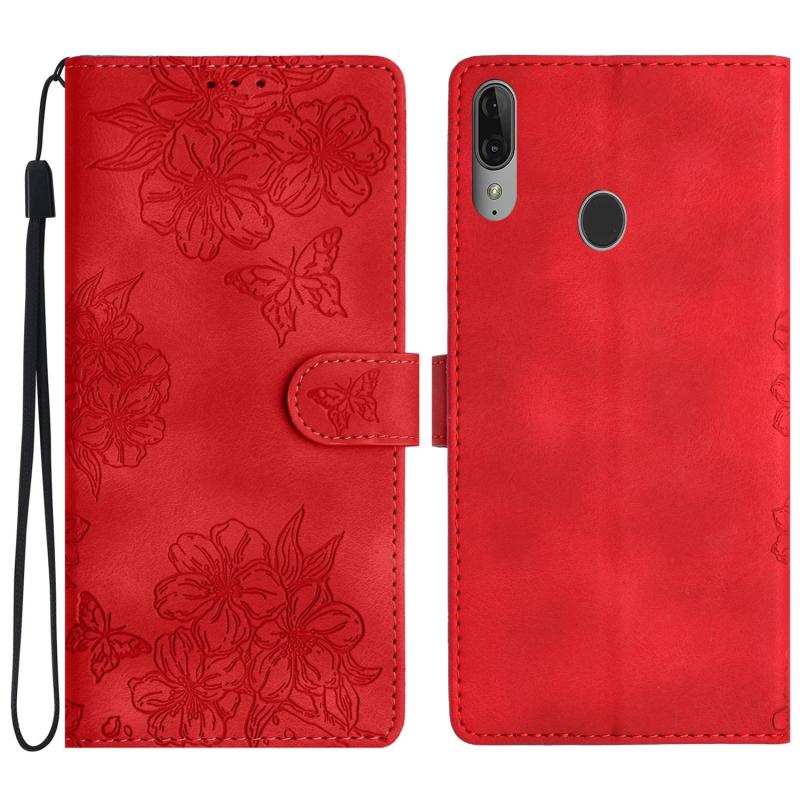 For Motorola Moto E6 Plus Cherry Blossom Butterfly Skin Feel Embossed PU Phone Case(Red)