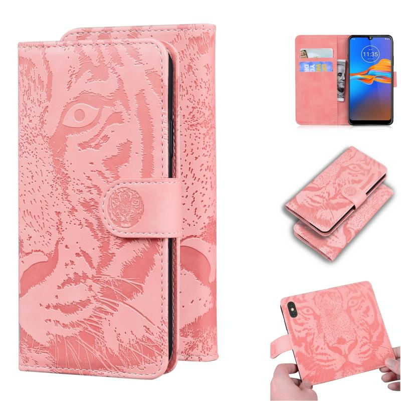For Motorola Moto E6 Plus Tiger Embossing Pattern Horizontal Flip Leather Case with Holder & Card Slots & Wallet(Pink)