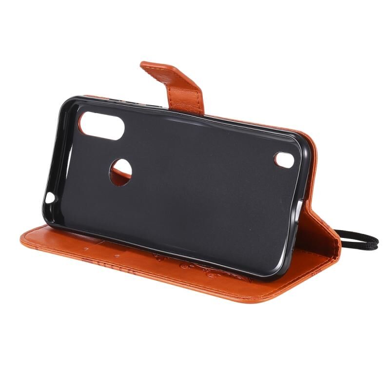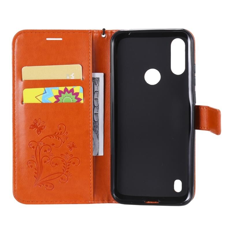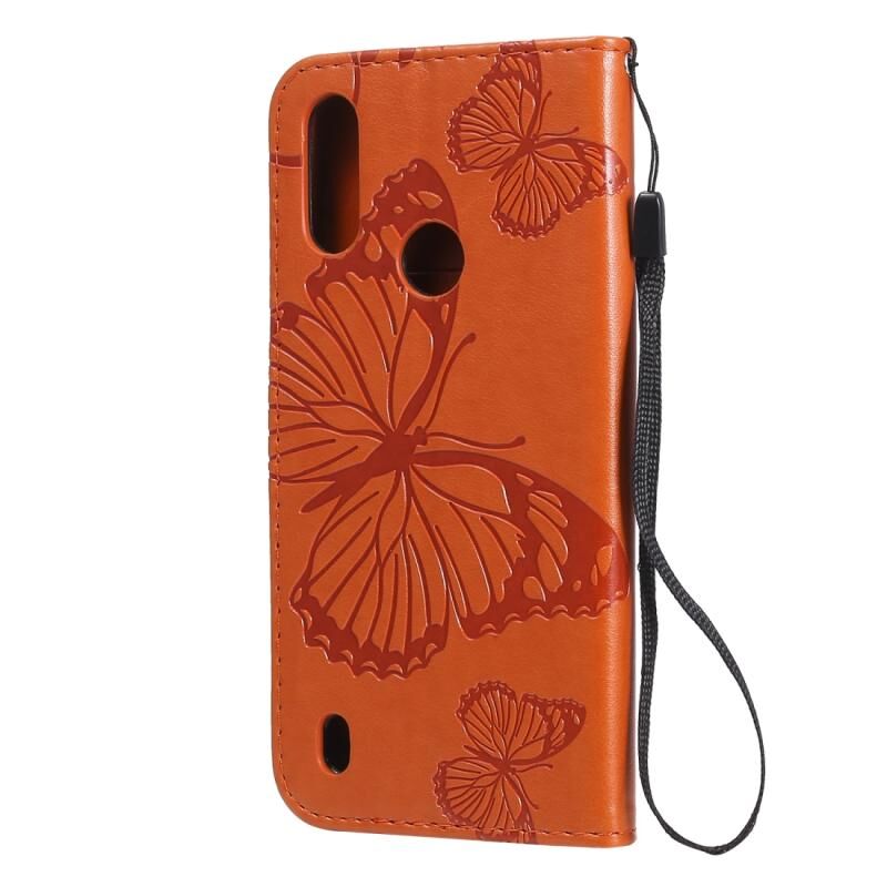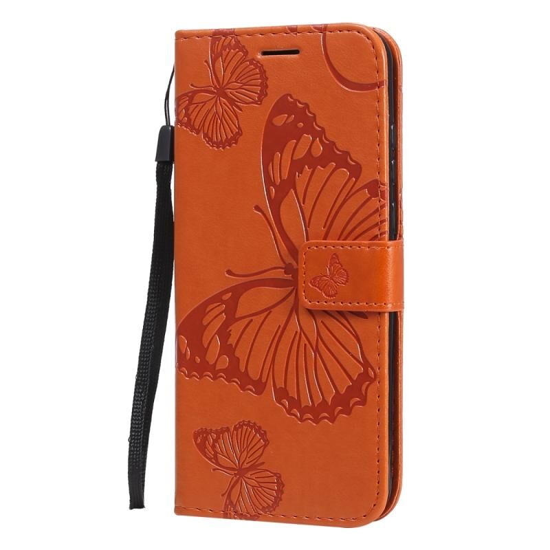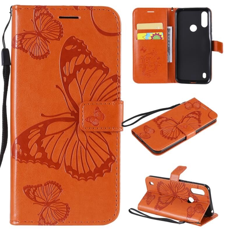 Θήκη δέρματος οριζόντιας αναδίπλωσης με ανάγλυφο σχέδιο 3D πεταλούδας για Motorola Moto E6s (2020) με βάση, θήκη για κάρτες, πορτοφόλι και κορδόνι (Πορτοκαλί)