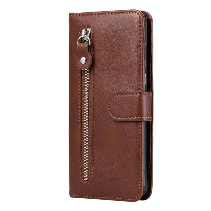 Για Motorola Moto E6s (2020) Fashion Calf Texture Zipper Horizontal Flip Leather Case με θήκη & υποδοχές για κάρτες & λειτουργία πορτοφολιού (καφέ)