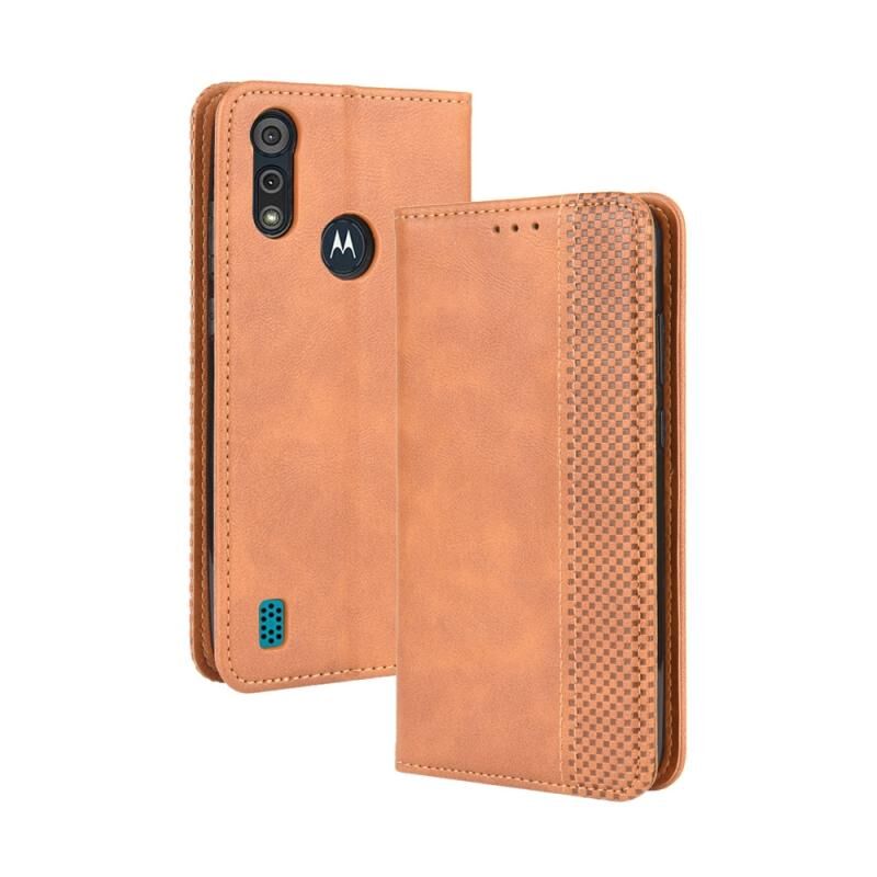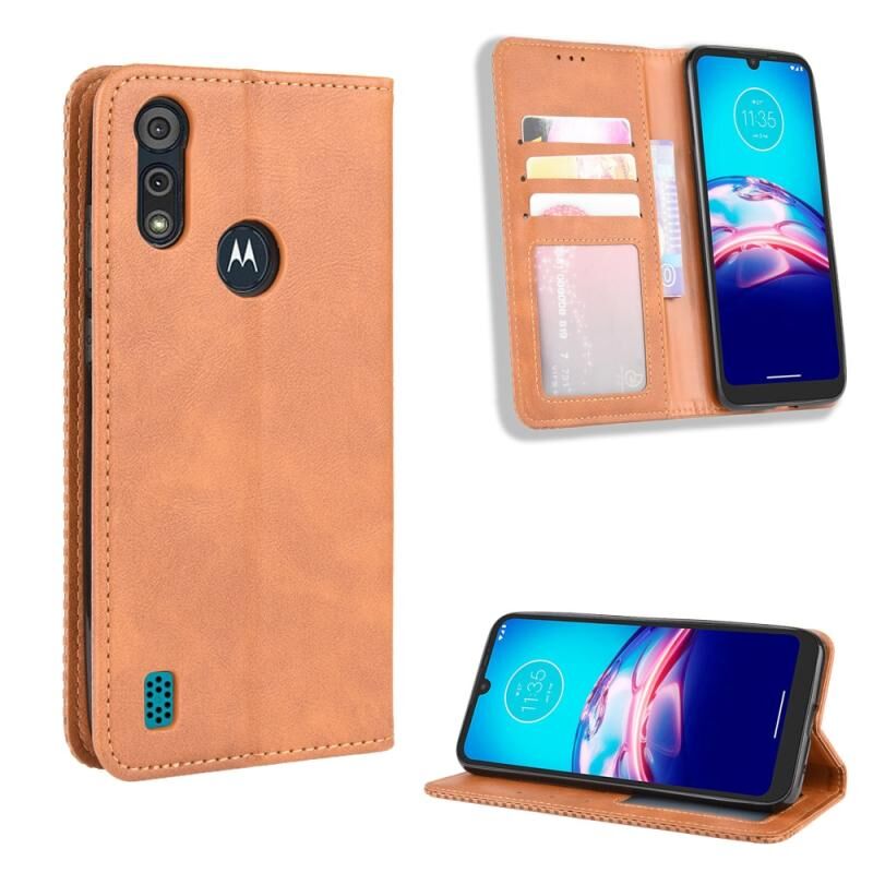 Για Motorola Moto E6s (2020) Μαγνητική αγκράφα Ρετρό υφή οριζόντια Flip δερμάτινη θήκη με θήκη & υποδοχές καρτών & πλαίσιο φωτογραφιών (καφέ)