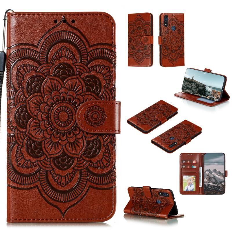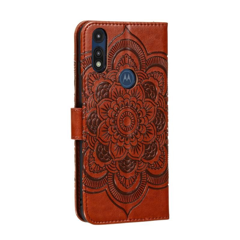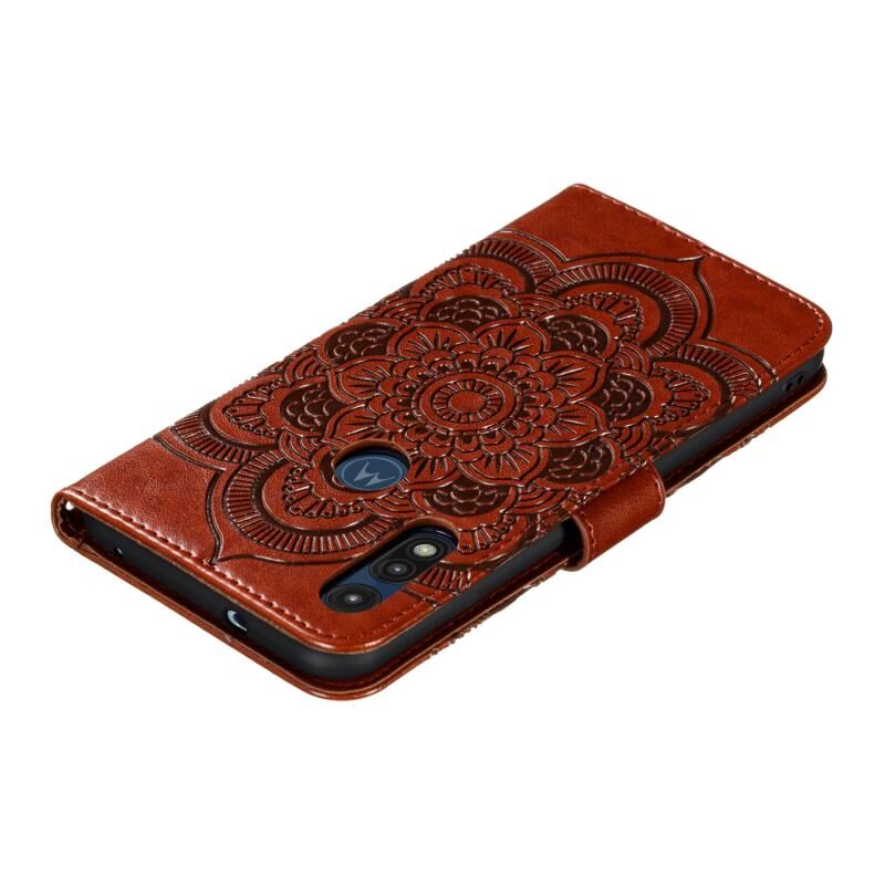 Θήκη για Motorola Moto E6s (2020) με σχέδιο Mandala σε ανάγλυφο, οριζόντια, από δερματίνη PU με βάση & θήκες για κάρτες & πορτοφόλι & κορδόνι (Πράσινο)