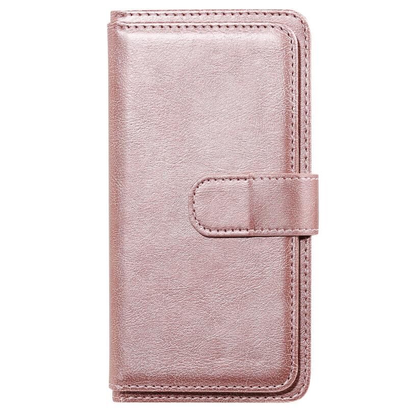 Για Motorola Moto E6S 2020 Πολυλειτουργική μαγνητική χάλκινη πόρπη οριζόντια Flip αμιγούς χρώματος δερμάτινη θήκη με 10 υποδοχές για κάρτες & πορτοφόλι & θήκη & κορνίζα φωτογραφιών (Ροζ χρυσός)