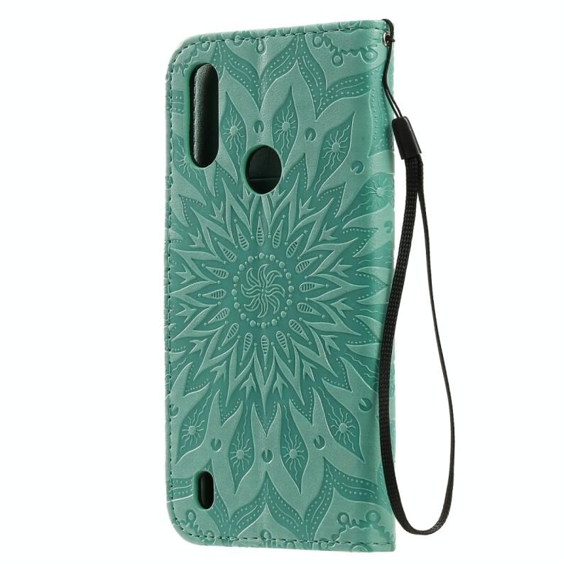 Για Motorola Moto E6s (2020) Πιεσμένη εκτύπωση ηλιοτρόπιο μοτίβο οριζόντια Flip PU δέρμα θήκη κάτοχος & υποδοχές καρτών & πορτοφόλι & Lanyard (πράσινο)