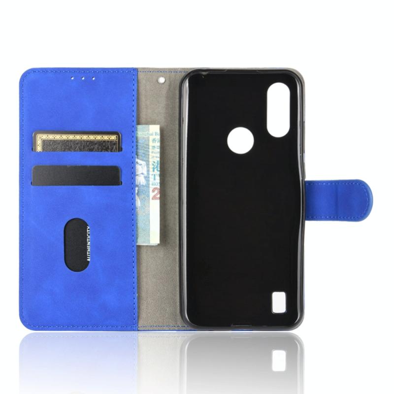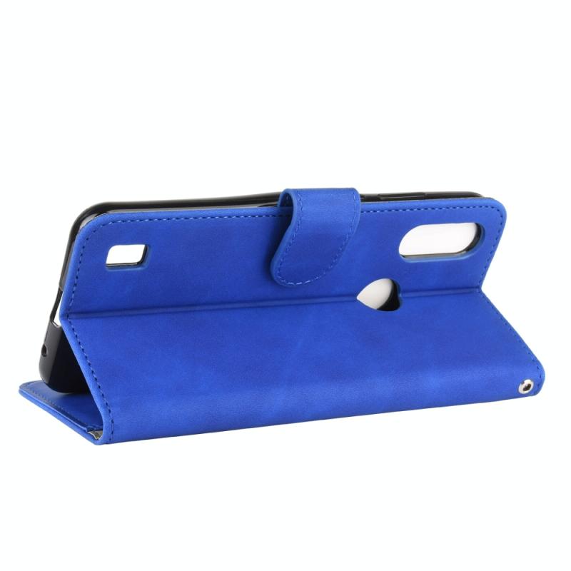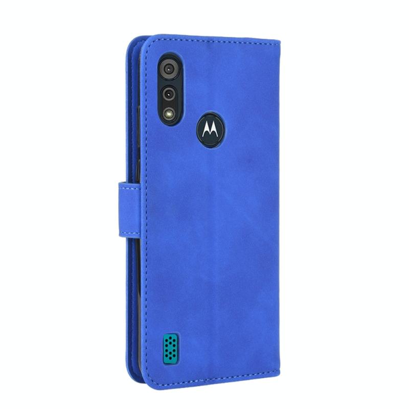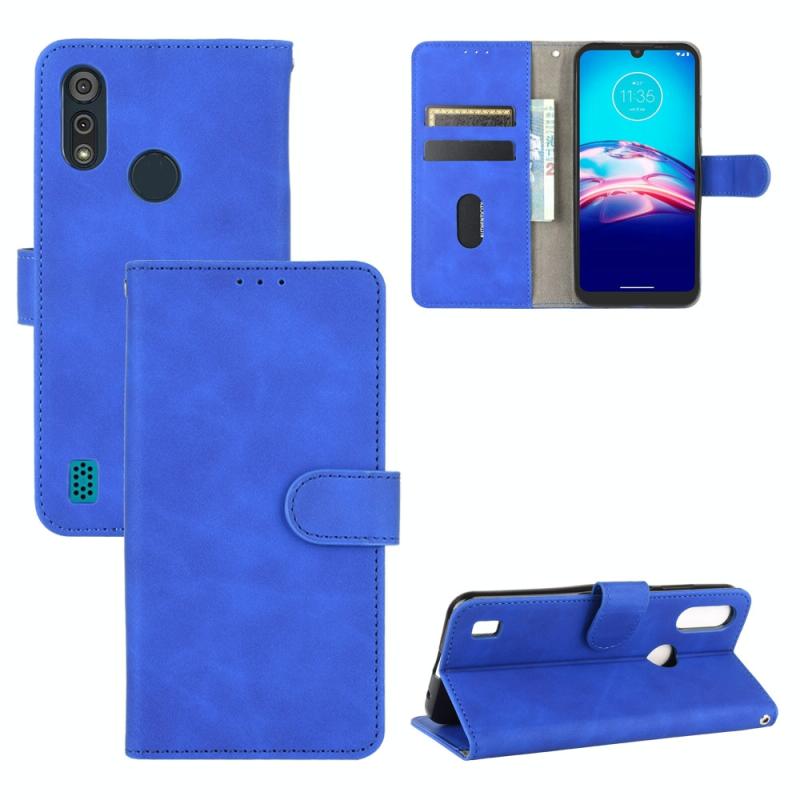 For Motorola Moto E6s(2020) Solid Color Skin Feel Magnetic Buckle Horizontal Flip Calf Texture PU Leather Case with Holder & Card Slots & Wallet(Blue)
