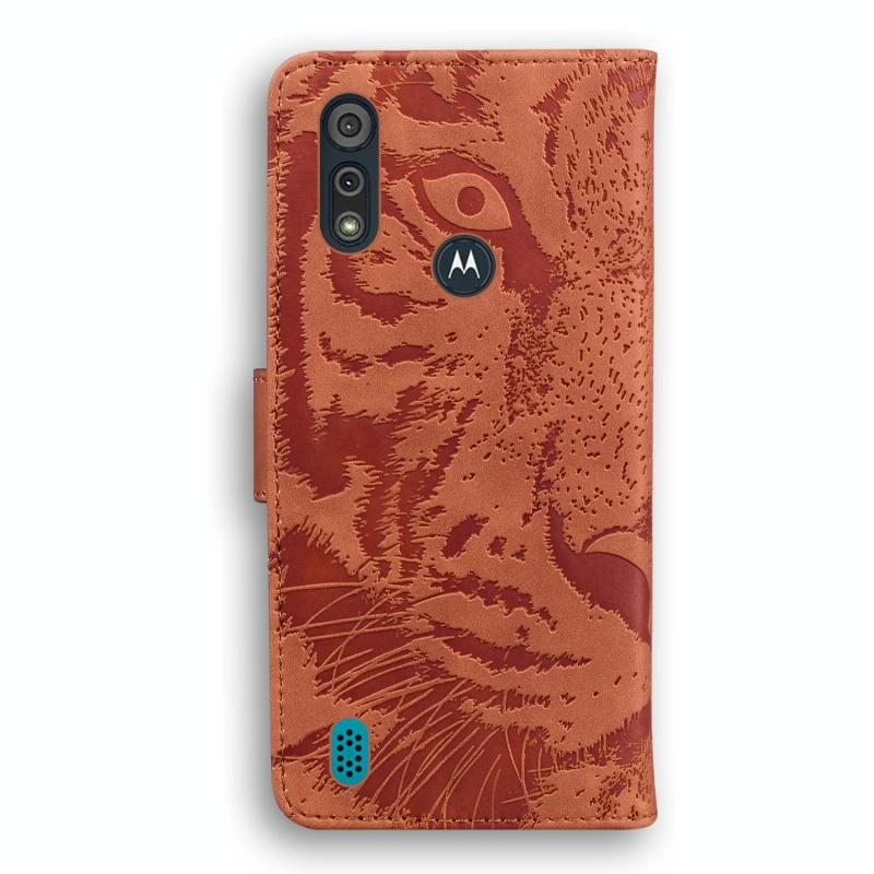 For Motorola Moto E6s 2020 Tiger Embossing Pattern Horizontal Flip Leather Case with Holder & Card Slots & Wallet(Brown)