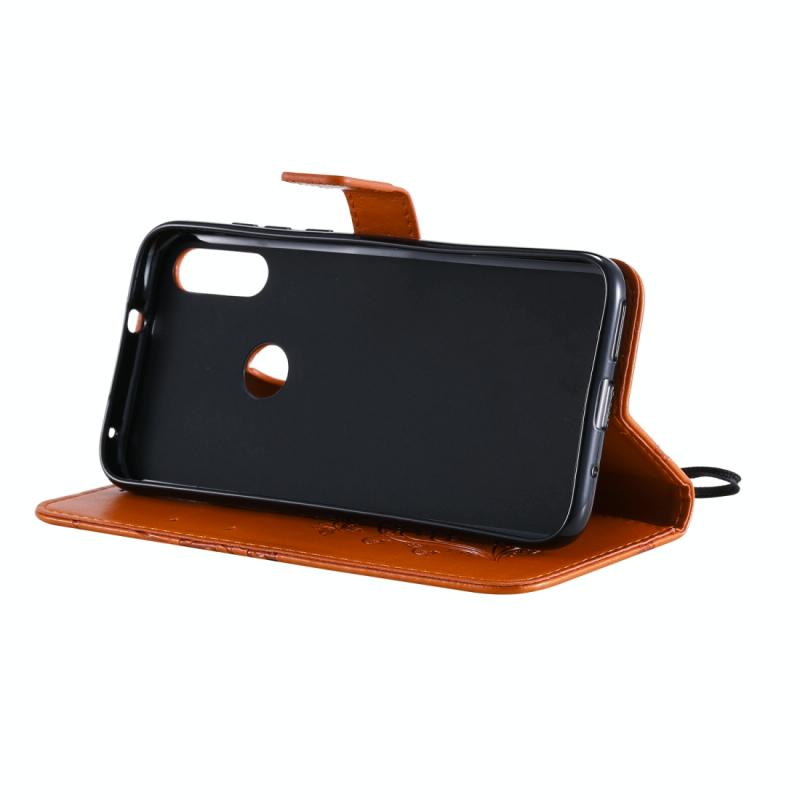 Θήκη δέρματος οριζόντιας αναδίπλωσης με ανάγλυφο σχέδιο 3D πεταλούδων για Motorola Moto E7 με βάση, θήκη για κάρτες, πορτοφόλι και λουρί (Πορτοκαλί)