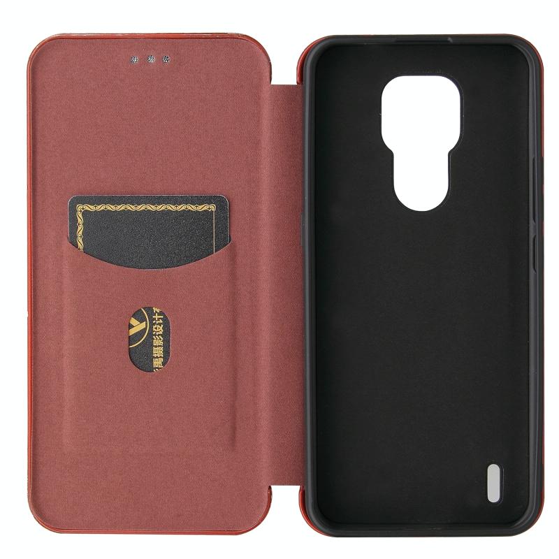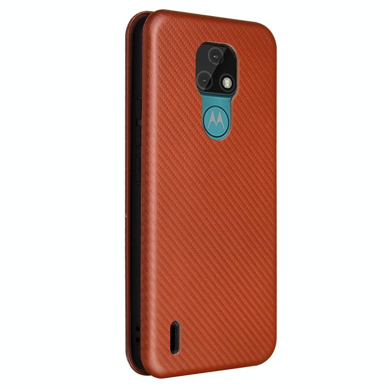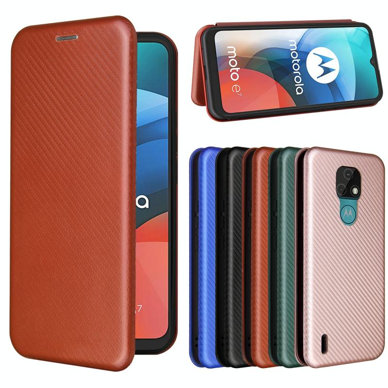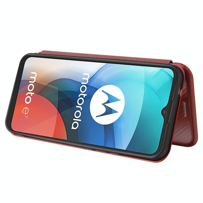 Θήκη για Motorola Moto E7, Υφή Άνθρακα, Οριζόντια, Flip, TPU + PC + Δερμάτινη (PU) με Θήκη Κάρτας (Καφέ)