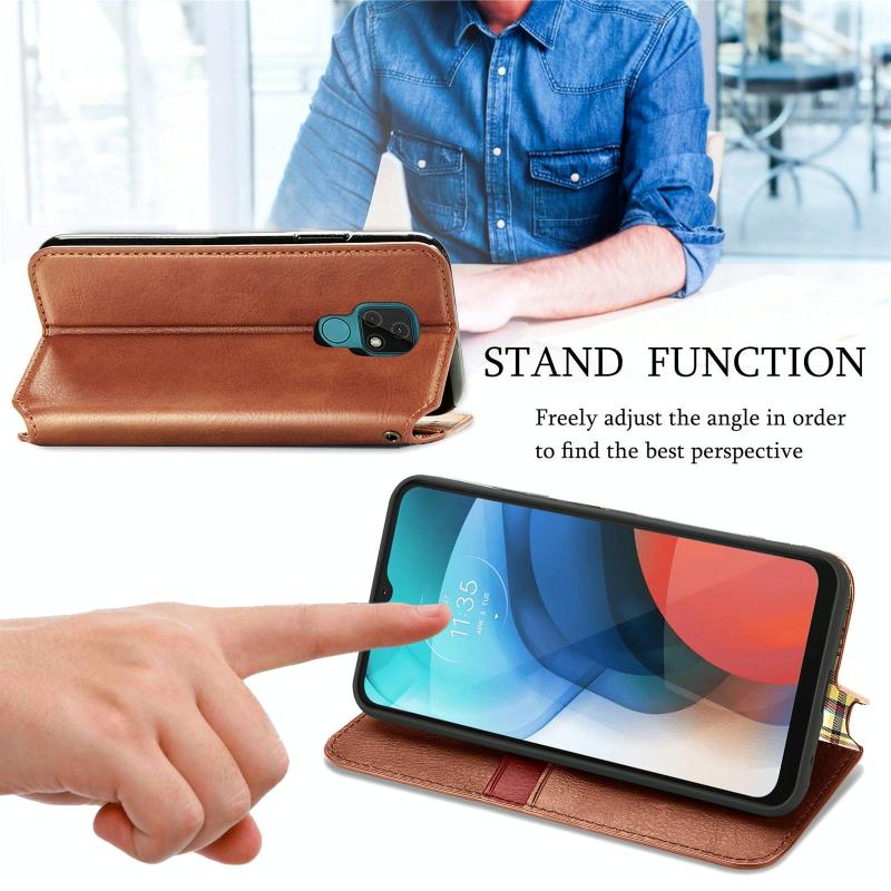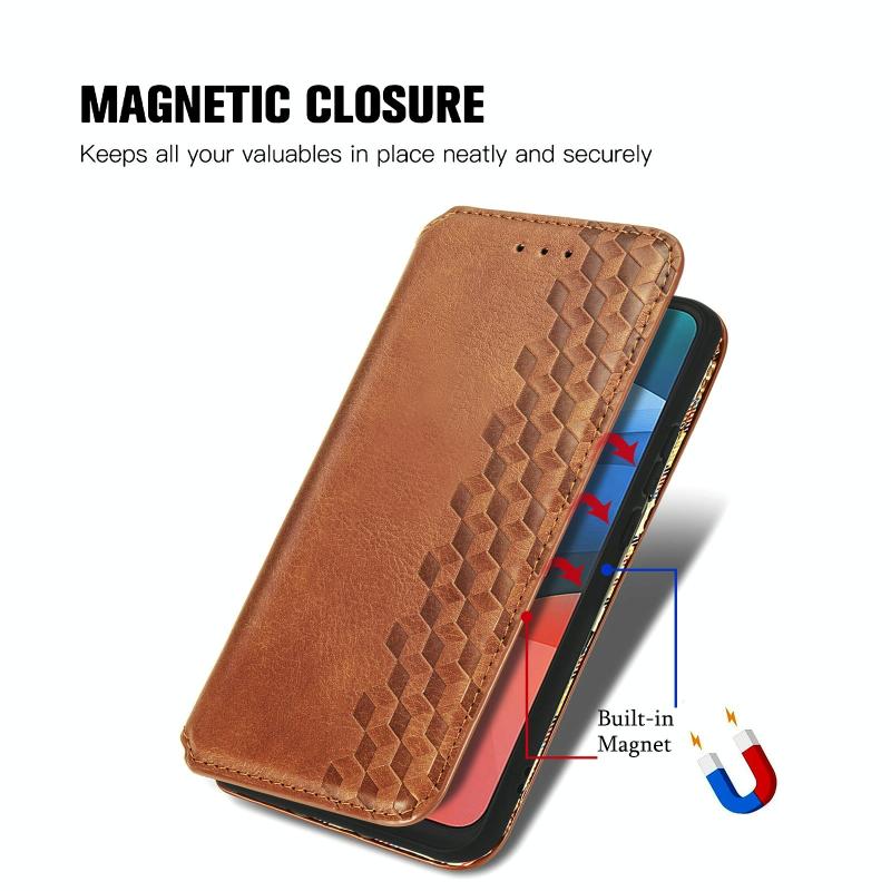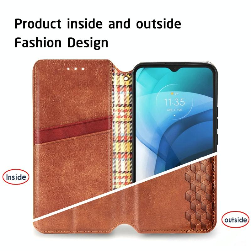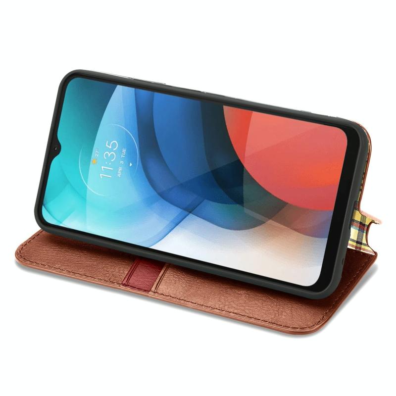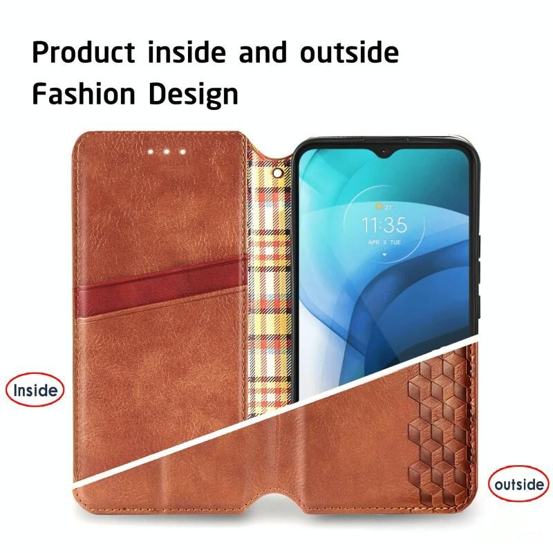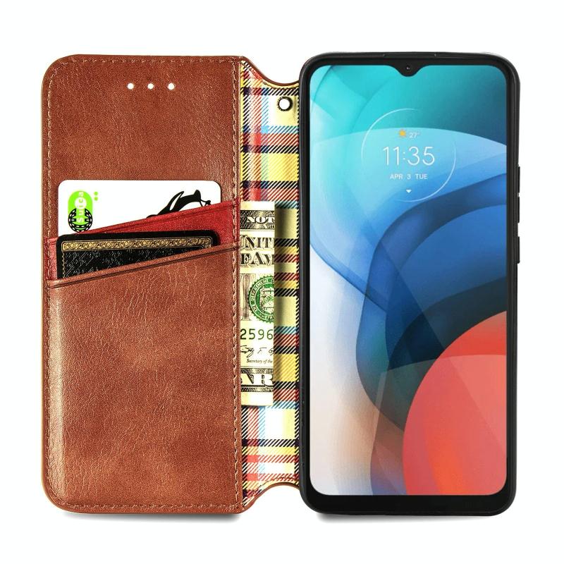 For Motorola MOTO E7 Cubic Grid Pressed Horizontal Flip Magnetic PU Leather Case with Holder & Card Slots & Wallet(Brown)