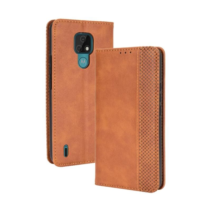 Για Motorola Moto E7 Μαγνητική πόρπη Ρετρό τρελό άλογο υφή οριζόντια Flip δερμάτινη θήκη με θήκη & υποδοχές για κάρτες & πλαίσιο φωτογραφιών (Καφέ)