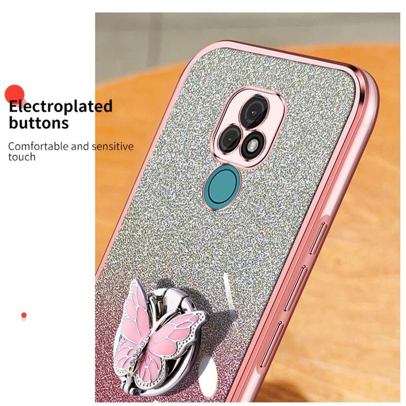 Για Motorola Moto E7 Επιμεταλλωμένο διαβάθμιση Glitter πεταλούδα κάτοχος TPU τηλέφωνο υπόθεση (ρόζ)