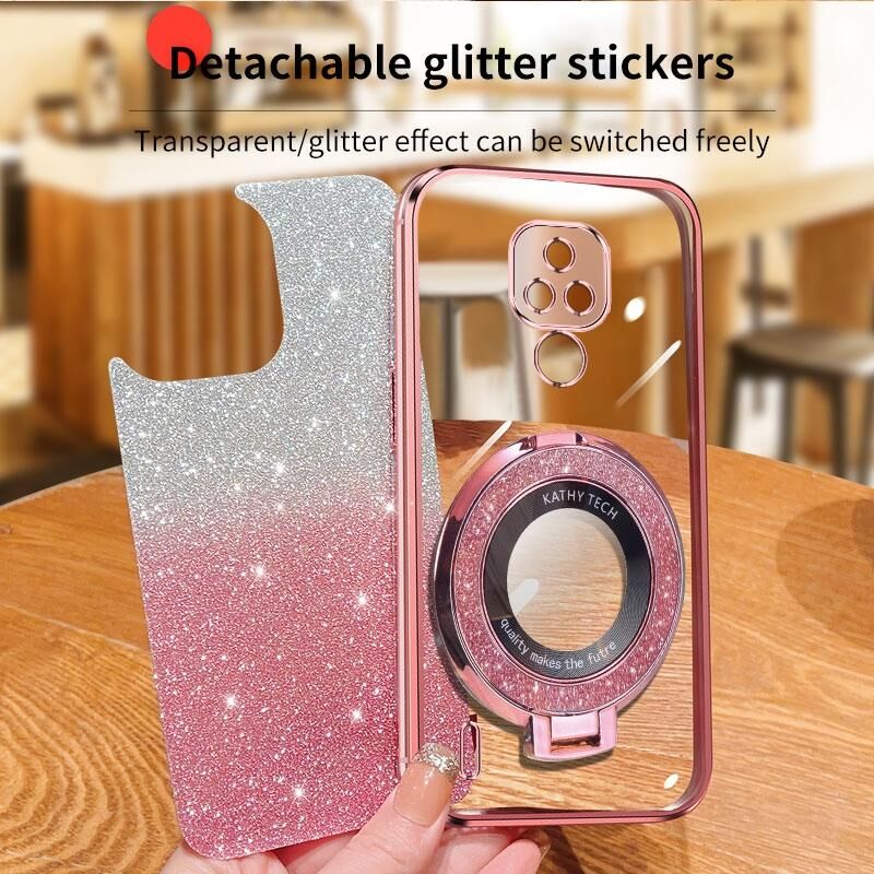 Για Motorola Moto E7 Επιμεταλλωμένο βαθμιδωτή Glitter στρογγυλή θήκη TPU τηλέφωνο κάτοχος (μαύρο)