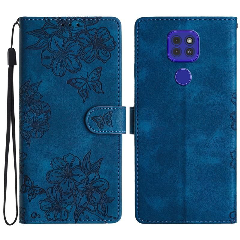 Θήκη κινητού τηλεφώνου Motorola Moto E7 Plus Cherry Blossom Butterfly Skin Feel Embossed PU (Κόκκινη)