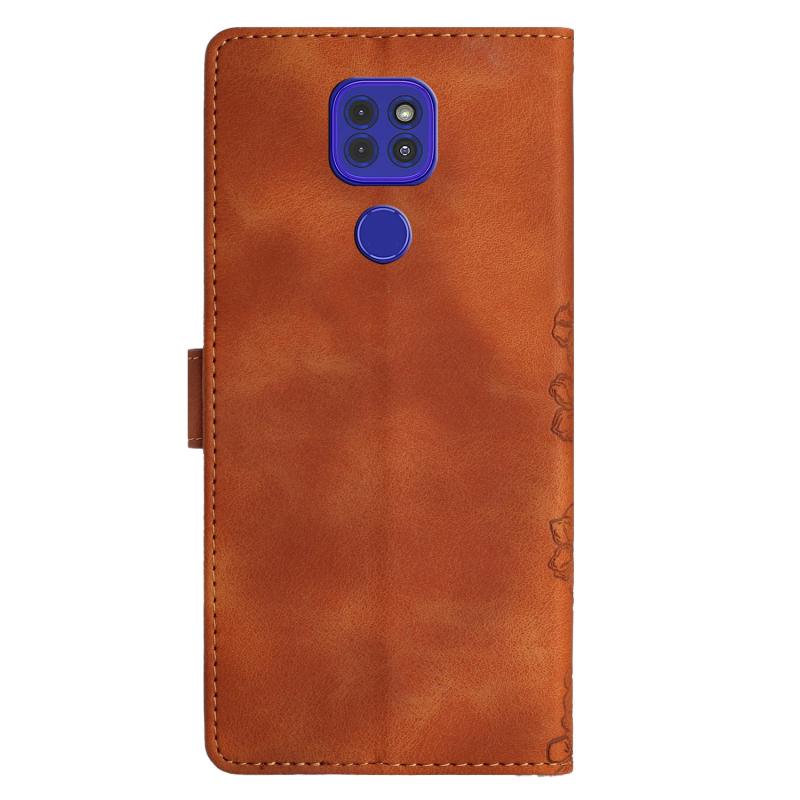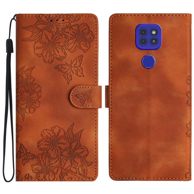 Θήκη κινητού τηλεφώνου Motorola Moto E7 Plus Cherry Blossom Butterfly Skin Feel Embossed PU (Καφέ)
