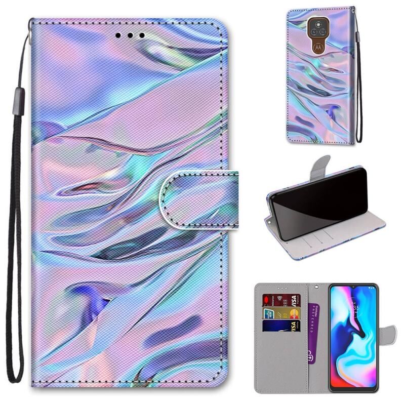 Θήκη για Motorola Moto E7 Plus / G9 Play / G9 με πολύχρωμο σχέδιο, υφή διασταυρούμενης υφής, οριζόντια αναδίπλωση από δερματίνη PU με βάση & υποδοχές καρτών & πορτοφόλι & κορδόνι (Υφή Φωτεινού Νερού)
