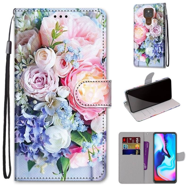 Θήκη για Motorola Moto E7 Plus / G9 Play / G9 με πολύχρωμο σχέδιο, υφή σταυρού, οριζόντια αναδίπλωση από δερματίνη PU με βάση στήριξης & θήκες καρτών & πορτοφόλι & κορδόνι (Πράσινο Λεμόνι)