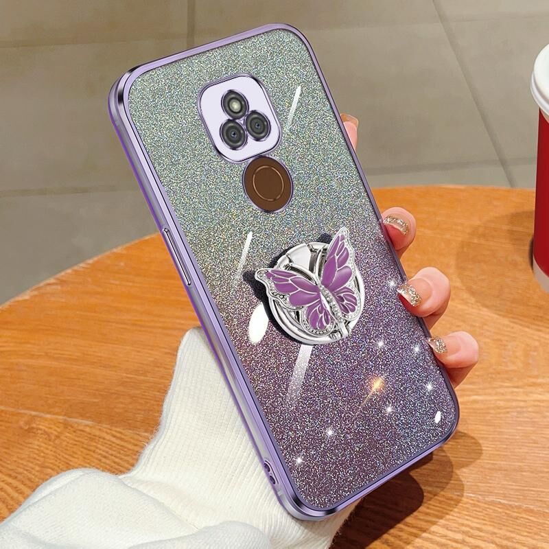 Για Motorola Moto E7 Plus Επιμεταλλωμένο διαβάθμιση Glitter πεταλούδα κάτοχος TPU τηλέφωνο υπόθεση (μωβ)