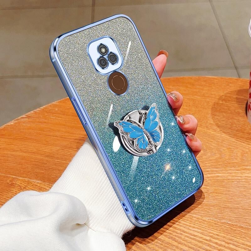 Για Motorola Moto E7 Plus Επιμεταλλωμένο διαβάθμιση Glitter πεταλούδα κάτοχος TPU τηλέφωνο υπόθεση (Sierra Blue)