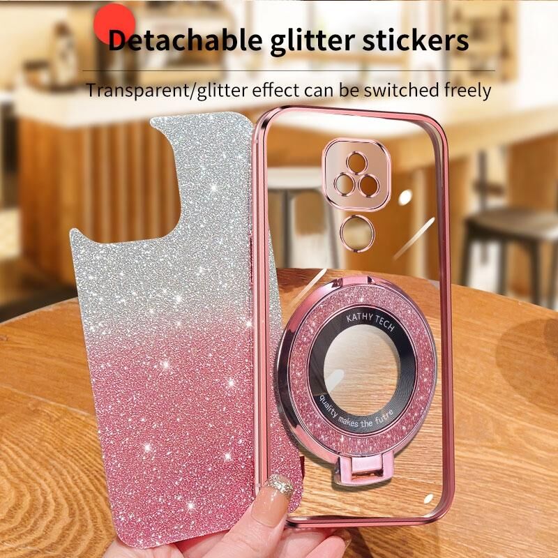 Για Motorola Moto E7 Plus Επιμεταλλωμένο βαθμιδωτή Glitter στρογγυλή θήκη τηλεφώνου TPU κάτοχος (μαύρο)